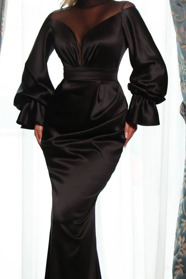 Designed for timeless elegance, this dress is crafted from soft, glossy cotton satin that drapes effortlessly, highlighting the silhouette with a graceful flow. The voluminous sleeves add a dramatic flair, balancing the dress’s sleek form with a bold, modern touch—perfect for sophisticated events, formal evenings, or fashion-forward celebrations.